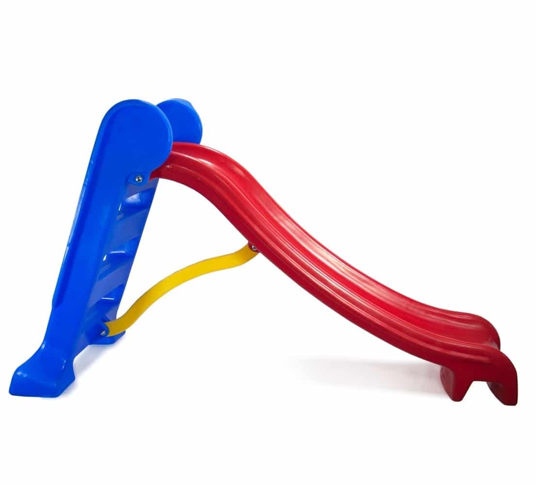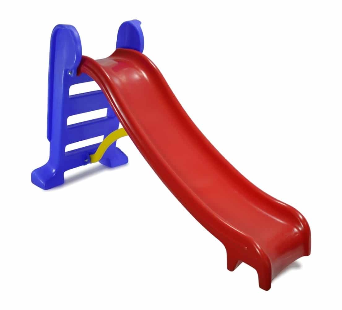O escorregador possui três degraus antiderrapante e um corrimão garantindo a segurança da criança, suas extremidades são arredondadas,