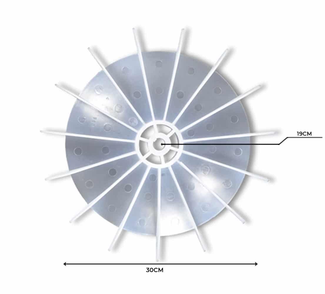 A hélice de motor soprador é fabricada com Polipropileno Injetado e o PVC Flexível, um material super resistente para garantir maior durabilidade e maior qualidade na vazão de ar.