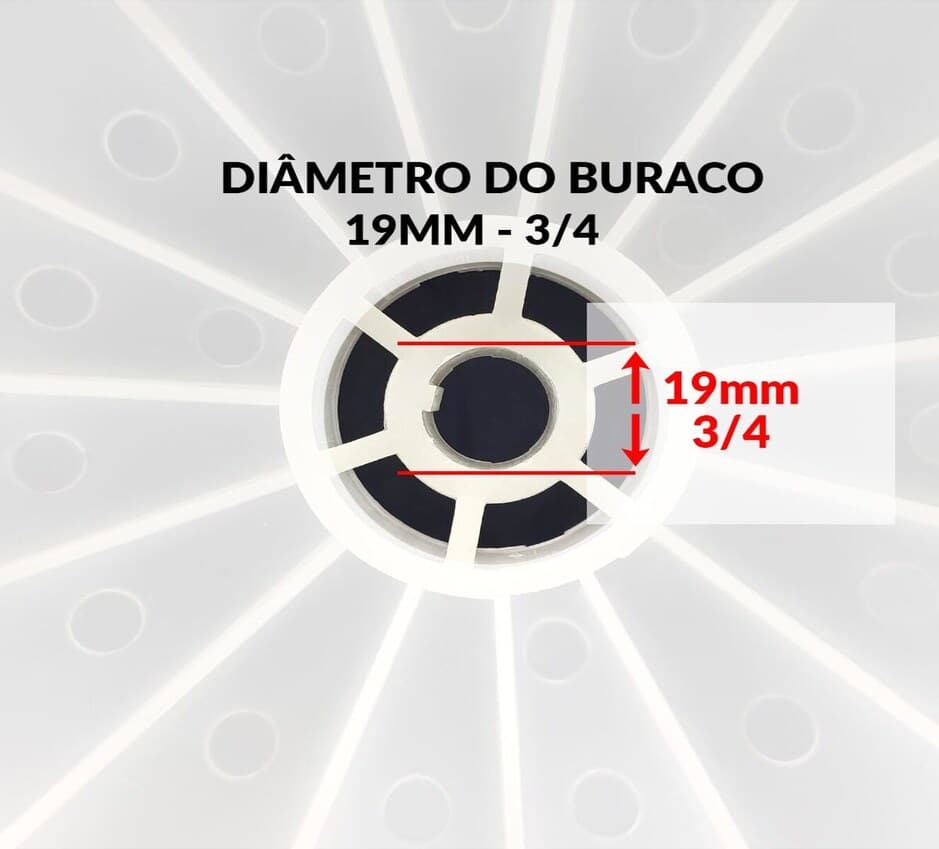 | Diâmetro Interno (do furo centraL) | ¾ |