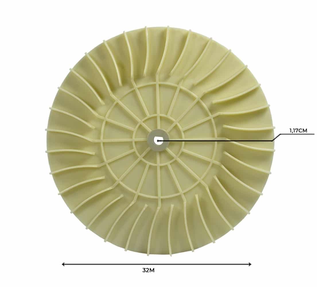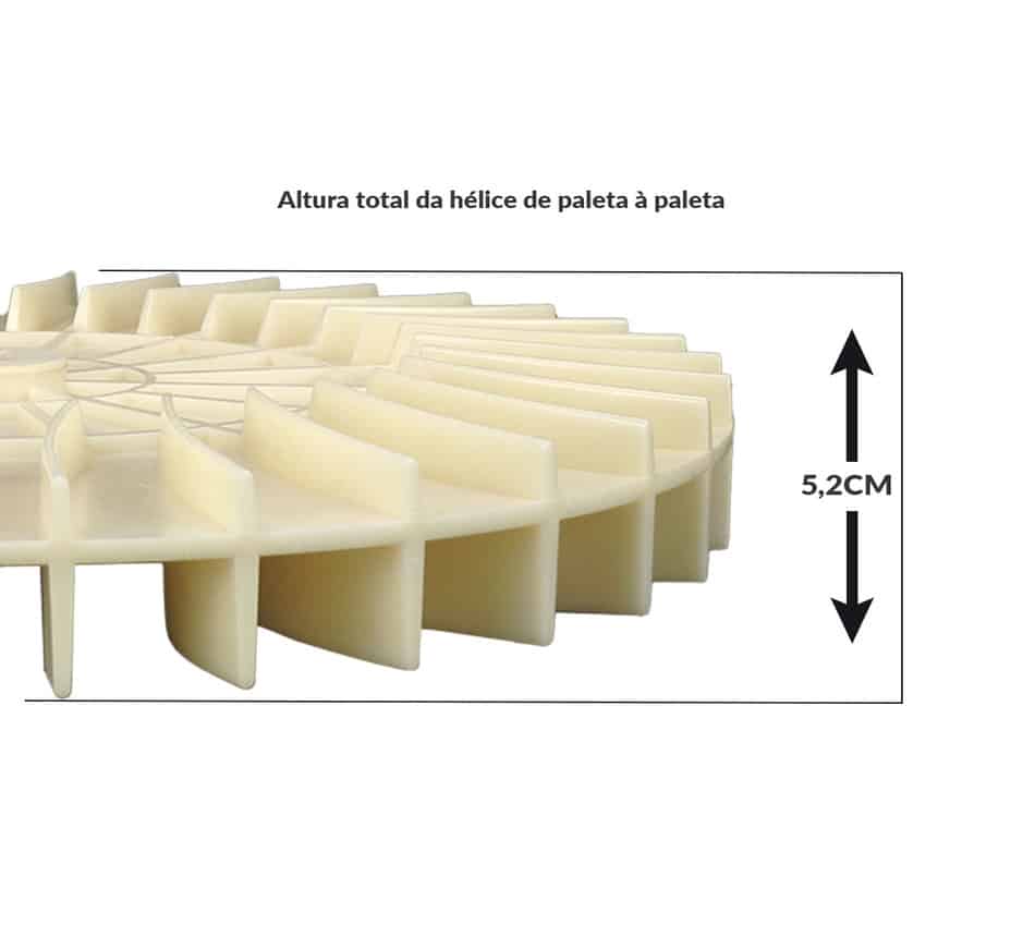 A hélice para motor soprador de brinquedo inflável é uma peça muito importante, ela é composta por várias pás unidas ao redor de um eixo central. Quando ligamos o motor soprador ela gira velozmente, essa rotação cria grande vazão de ar. A vazão de ar gerada pelo motor e pela hélice enche com rapidez os brinquedos infláveis e o mantem cheio de ar por algumas horas.
