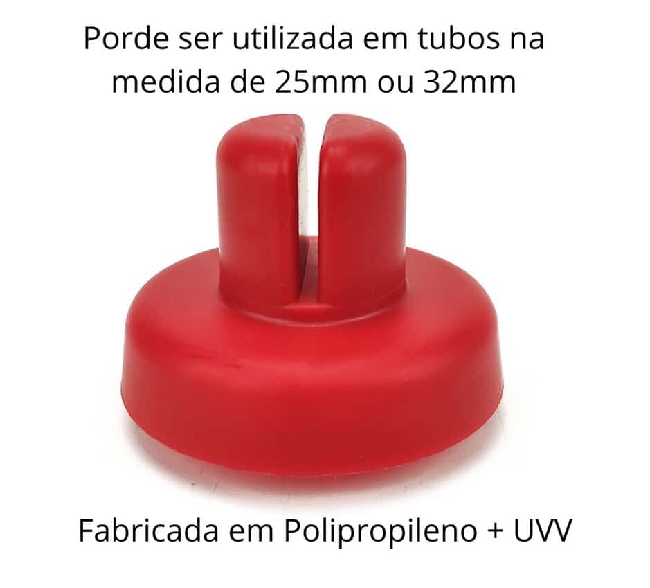PONTEIRASua fabricação é feita com o Pollietileno + UVV um plástico duro e super resistente. O acabamento da ponteira é arredondado para não causar acidentes durante a brincadeira e deixar sua cama elástica mais segura. A Ponteira para Haste de Cama Elástica possui a função de sustentar a rede de proteção, mas além dessa função ela também impede a entrada de água na haste metálica. A ponteira é colocada em cada ponta da haste metálica para que possa cumprir sua função. Diâmetro de encaixe do tubo: 2,5cm / 3,2cm| Diâmetro do Chapéu: 6cm | Altura: 4.5cm |