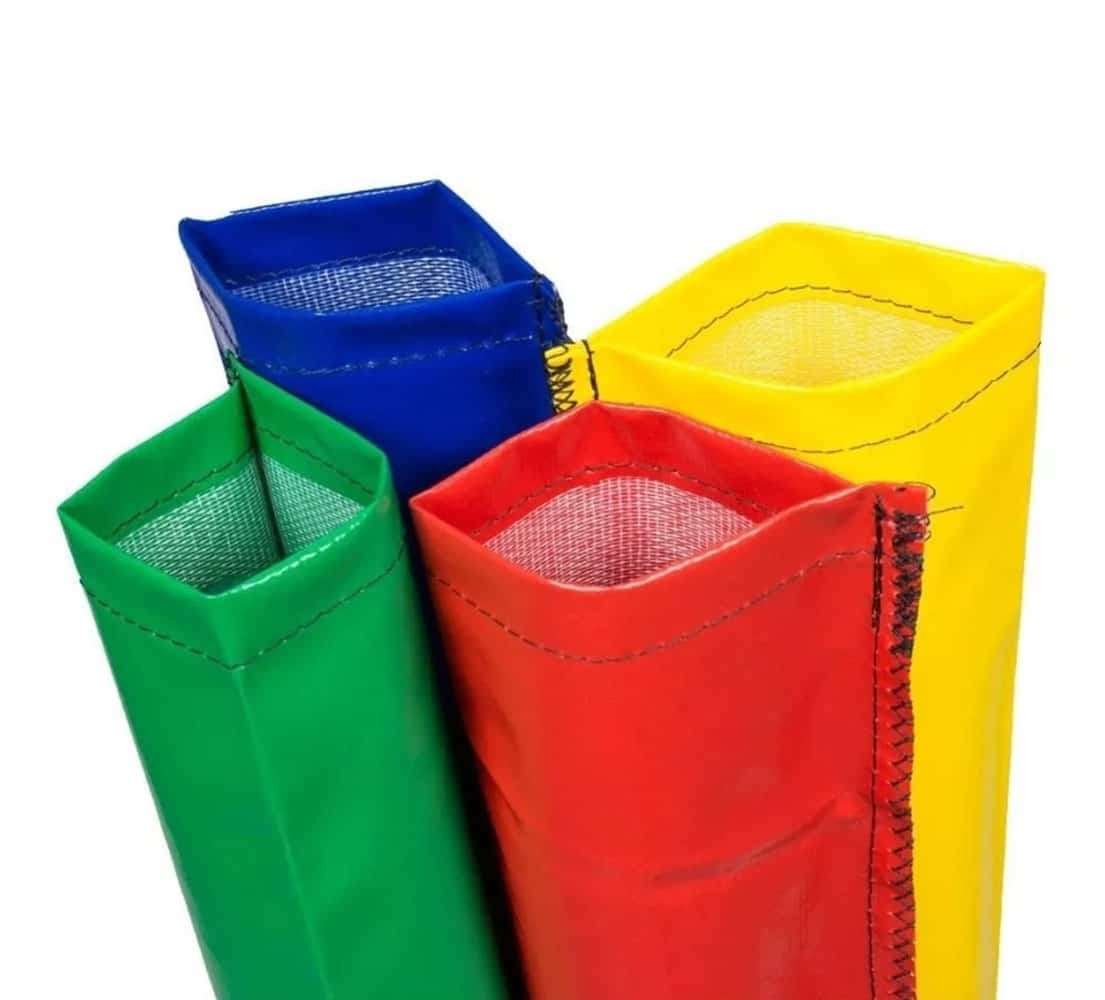 O material utilizado na fabricação das capas para hastes de cama elástica é a Lona Pvc Bagun colorida. Ela é impermeável, ou seja, não absorve a água e tem proteção UV. Esse material possui a máxima qualidade para garantir mais resistência e maior durabilidade.