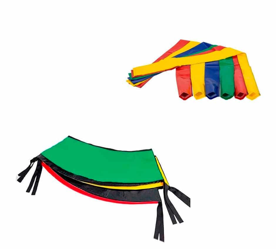 Protetor de MolasA principal função do protetor de molas é proteger e evitar acidentes, pois impede que os pés afundem nas molas durante a brincadeira. O material de fabricação é a Lona Vinil Pvc que é impermeável. A parte interna possui o Polipropileno Expandido. As emendas possuem reforço e as fitas para amarrar são elásticas. O acabamento é multicolorido e as cores utilizadas na fabricação é o amarelo, verde, vermelho e azul. Altura: 2cm | Diâmetro: 2,44m