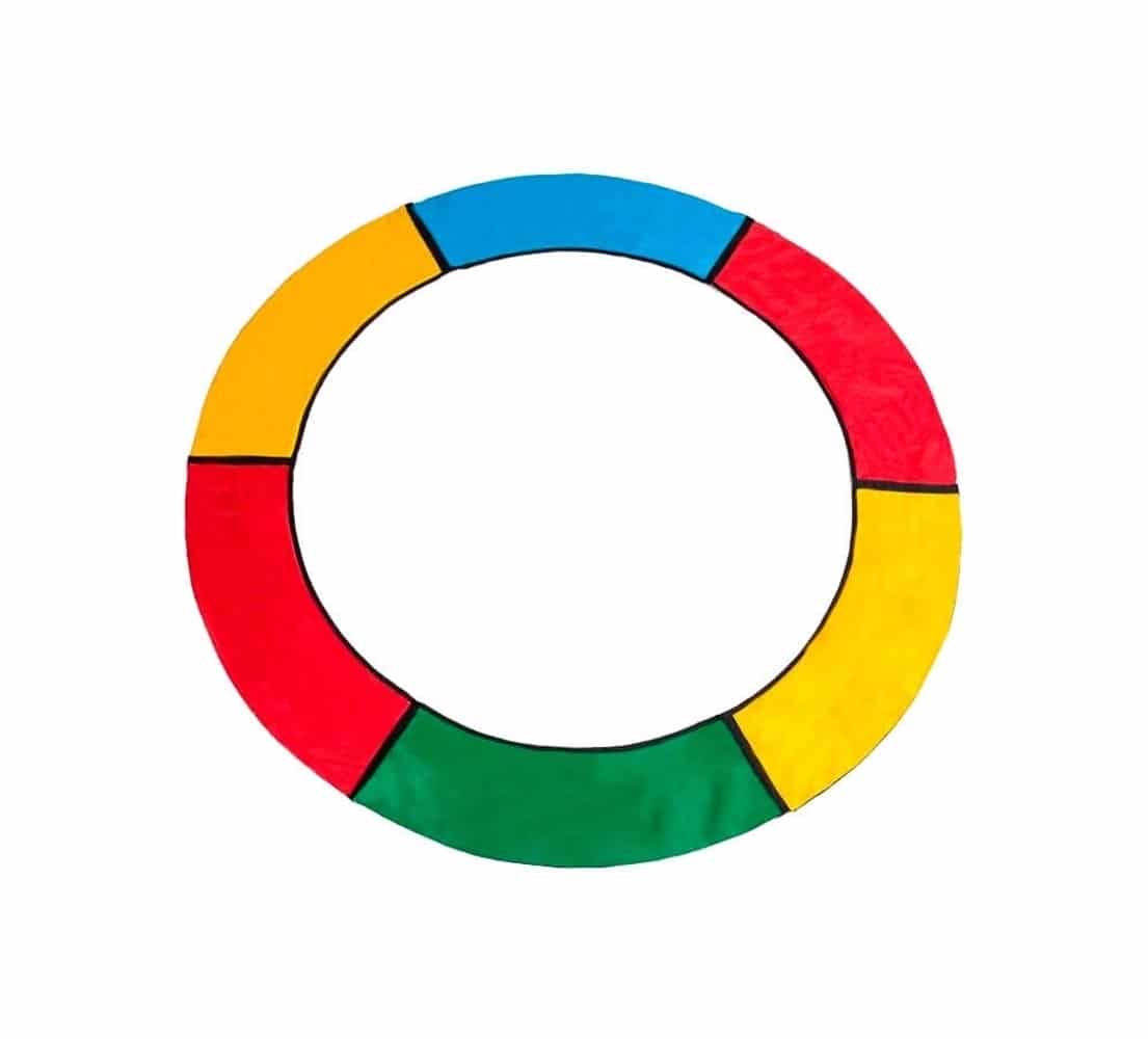 Protetor de MolasA principal função do protetor de molas é proteger e evitar acidentes, pois impede que os pés afundem nas molas durante a brincadeira. O material de fabricação é a Lona Pvc Vinil que é impermeável. A parte interna possui o Polipropileno Expandido. As emendas possuem reforço e as fitas para amarrar são elásticas. O acabamento é multicolorido e as cores utilizadas na fabricação é o amarelo, verde, vermelho e azul. Altura: 2cm | Diâmetro: 3,66m |