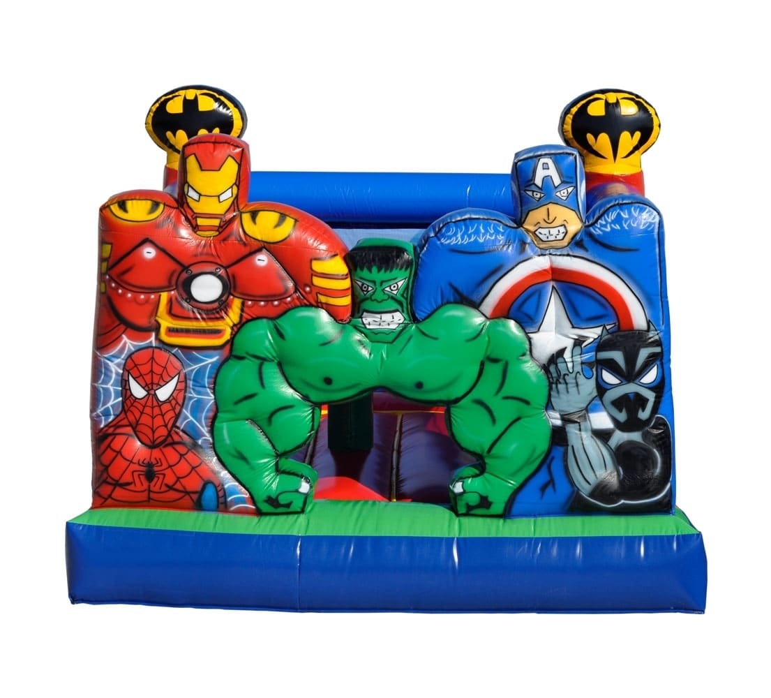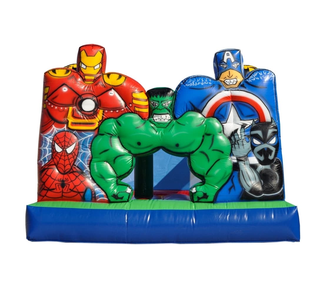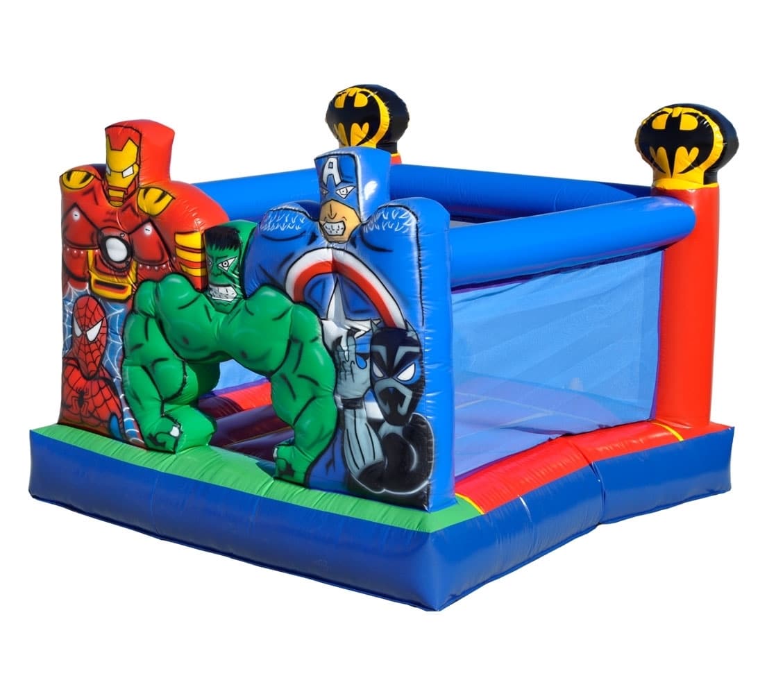 Pula Pula Castelo Herois Com Rede é um inflável de personagem, tornando assim, ele mais atrativo e divertido para as crianças.
