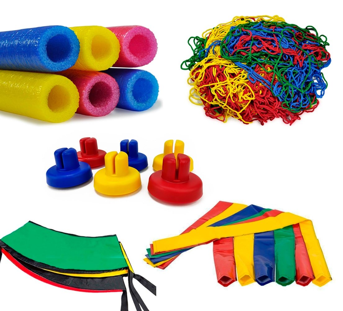 Ele é composto por 5 acessórios essenciais da cama elástica ou pula-pula. Os acessórios que compõe este kit são: Isotubos, Rede de Proteção, Protetor de Molas, Ponteiras e Capa para Isotubo