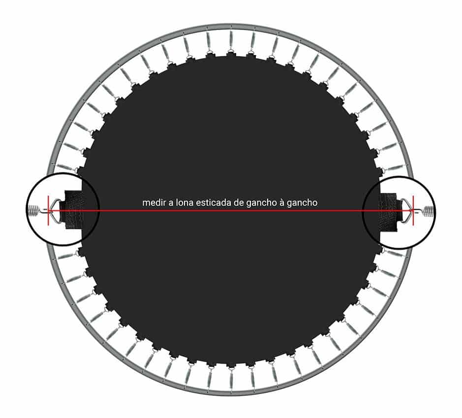 Para medir dixe sua cama elástica montada, pegue uma trena e faça a medida de uma extremidade do aro até a outra.