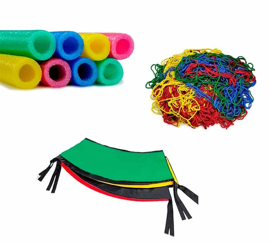 As ações do tempo, como por exemplo, a exposição ao sol ou chuva, o uso inadequado e o uso frequente podem desgastar, danificar e perder a cor dos acessórios da cama elástica. Para deixar seu equipamento com aparência de novo e com a segurança em dia faça a reposição sempre que houver necessidade.